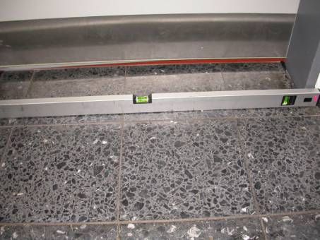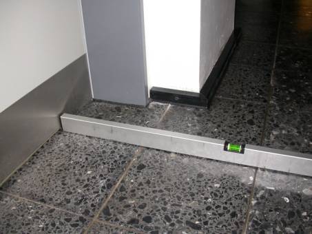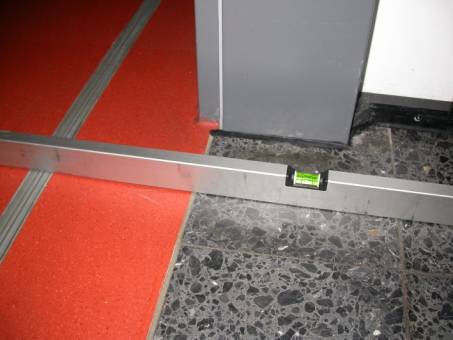 Wasserwaage den Verlauf des Fußbodens im Bereich des Flures und in den