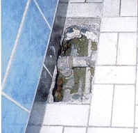 | Einsatz eines Bodenmikrofons Austretendes Leckagewasser erzeugt Fließgeräusche die mit dem Bodenmikrofon extrem verstärkt und für das menschliche Ohr hörbar gemacht werden. |