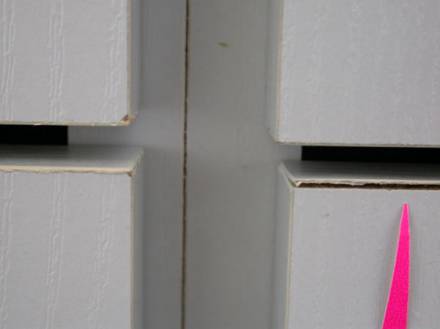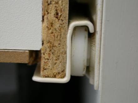 einigen Schubkastenblenden löst sich z.T. die Kantenbeschichtung. Foto: Hier