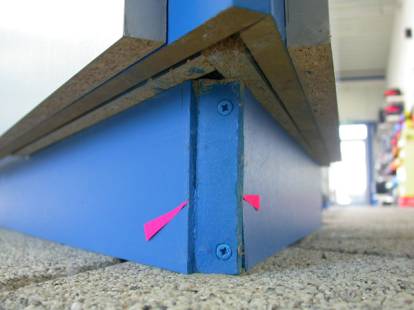 Deckleisten aufgeschraubt, die eine fehlerhafte Konstruktion des